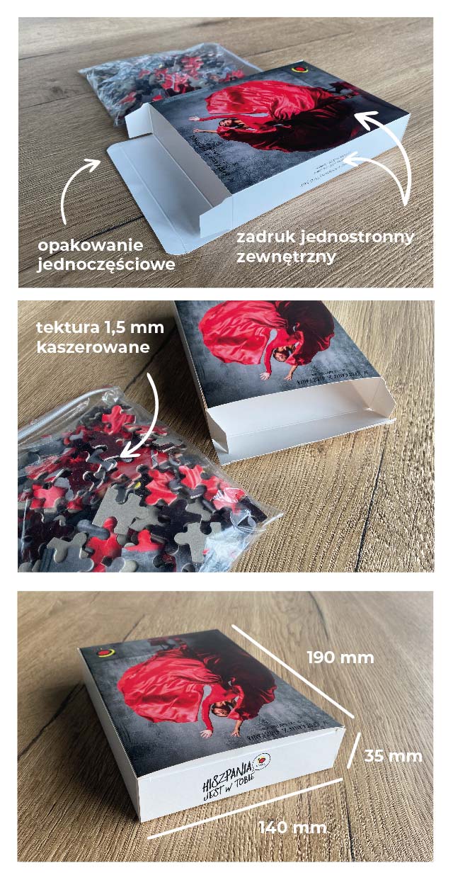 format pudełka do puzzli 140 mm x 190 mm x 35 mm