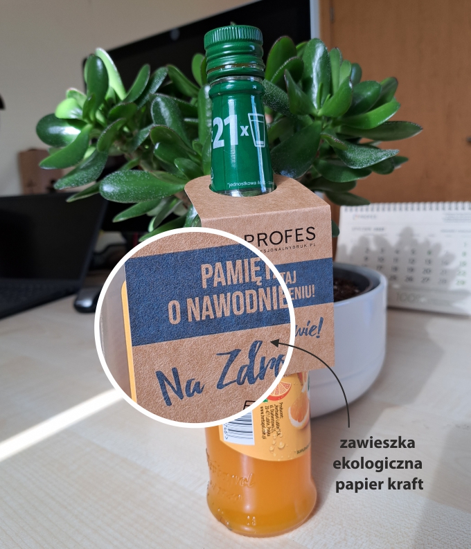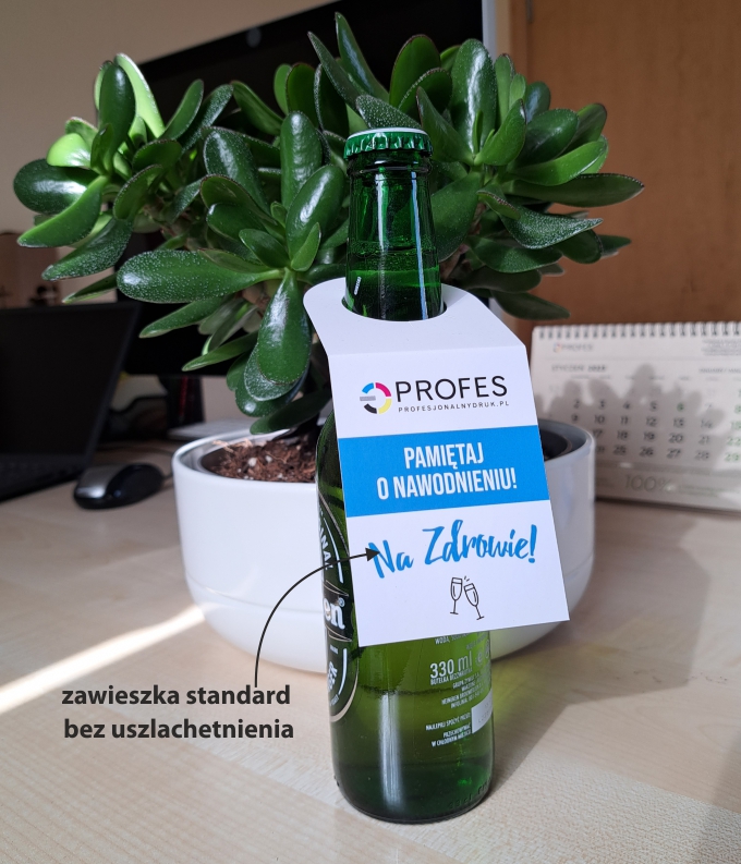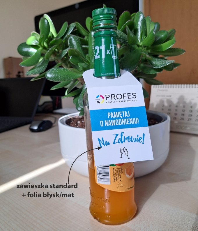 Zawieszki na butelkę spotykane są na wielu eventach. To ciekawa forma reklamy i informacji, można na nich umieścić dowolne grafiki, opisy danego napoju czy informacje konkursowe. Zawieszki drukujemy na kilu podłożach takich jak standardowe kredy, kreda z folią czy papiery ekologiczne