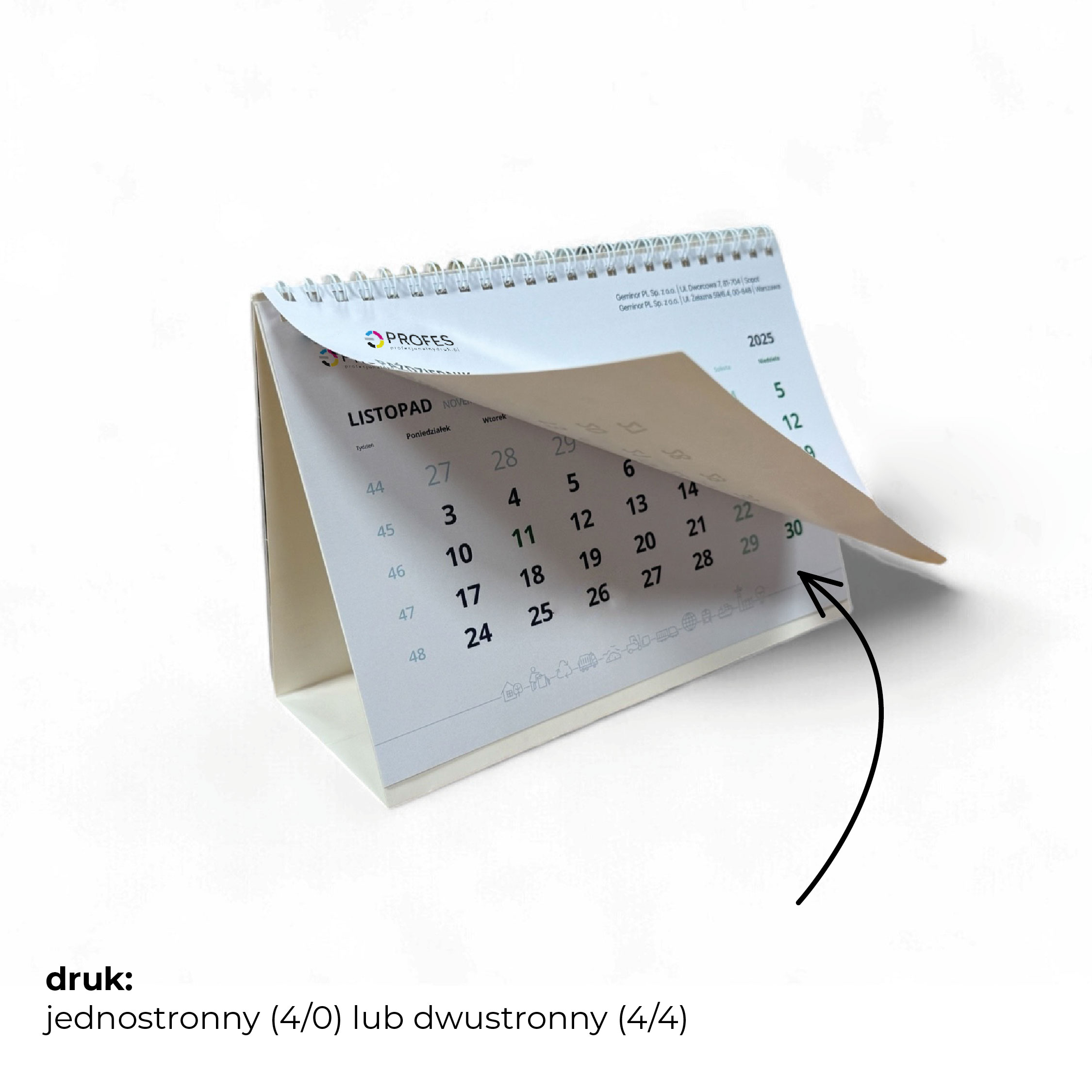 Nadruk: 7 KART MIESIĘCZNYCH druk dwustronny / 1 miesiąc na stronie lub 13 KART MIESIĘCZNYCH druk dwustronny / 1 miesiąc na dwóch stronach