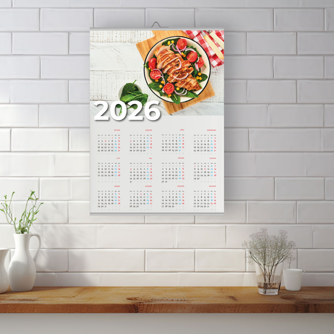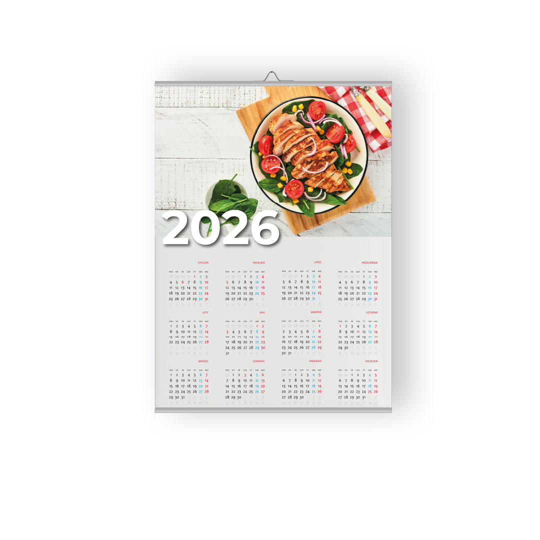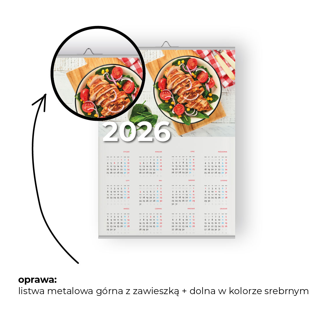 Kalendarze listwowane to największe kalendarze w naszej ofercie. Ogromna powierzchnia umożliwia doskonałą prezentację firmy przy zachowaniu czytelności kalendarium. Każdy kalendarz wykończony jest metalową listwą na górze i dole z zawieszką.
