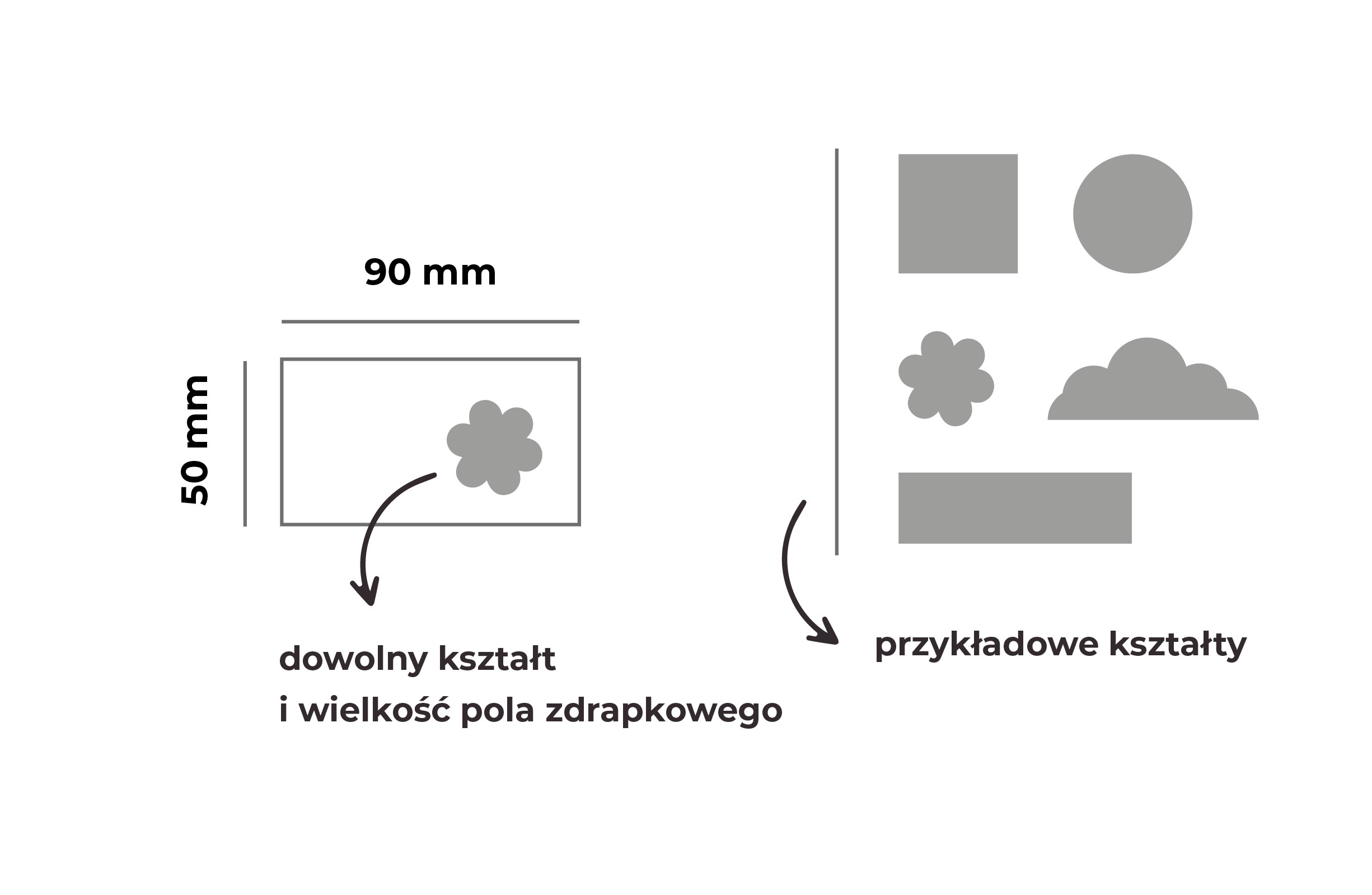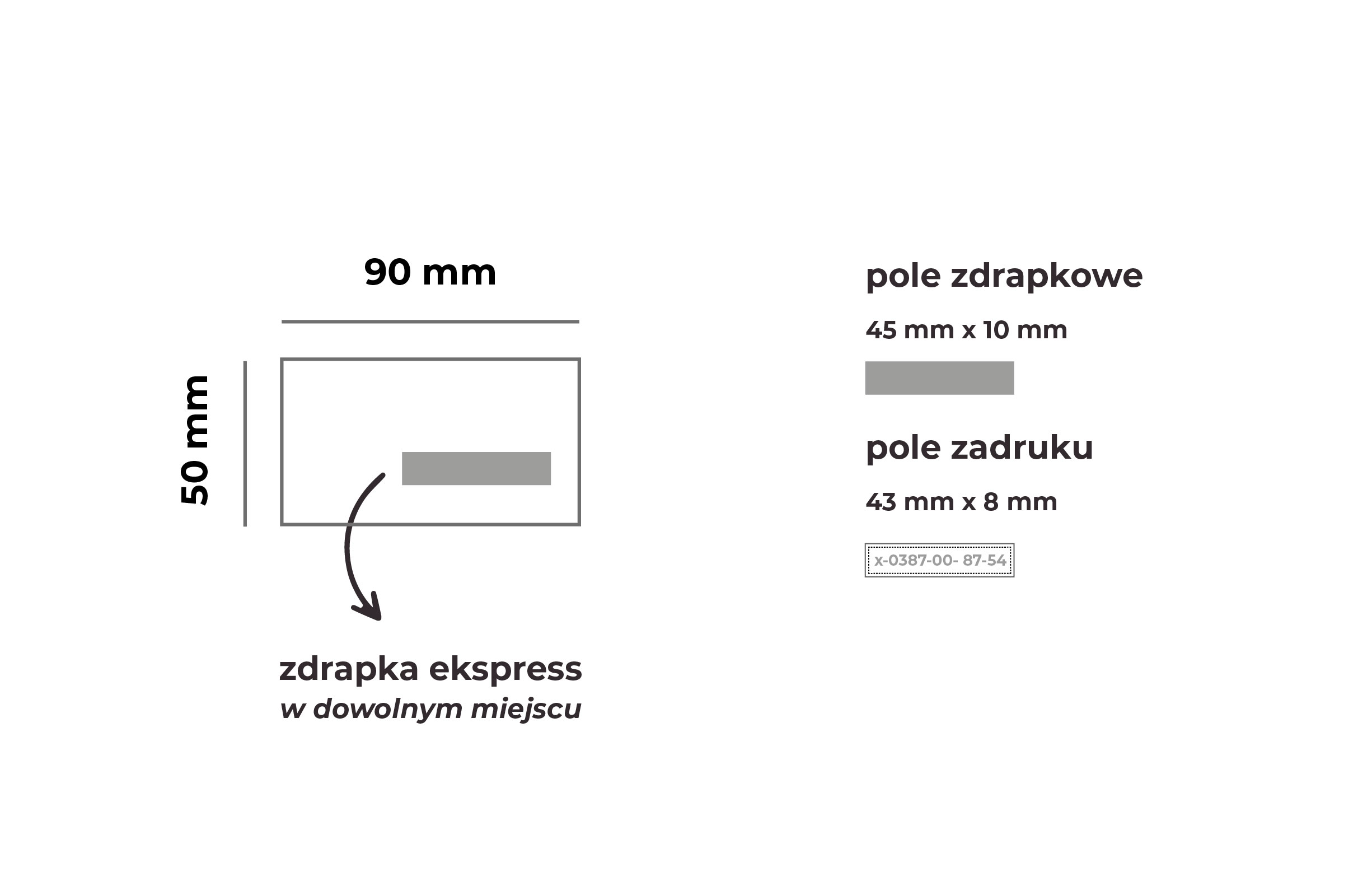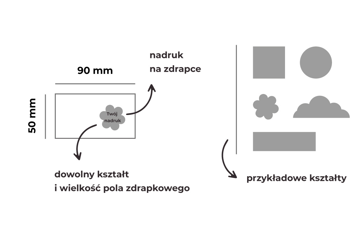 KUPON 90×50 mm ZE ZDRAPKĄ o dowolnym kształcie i wielkości pola zdrapkowego