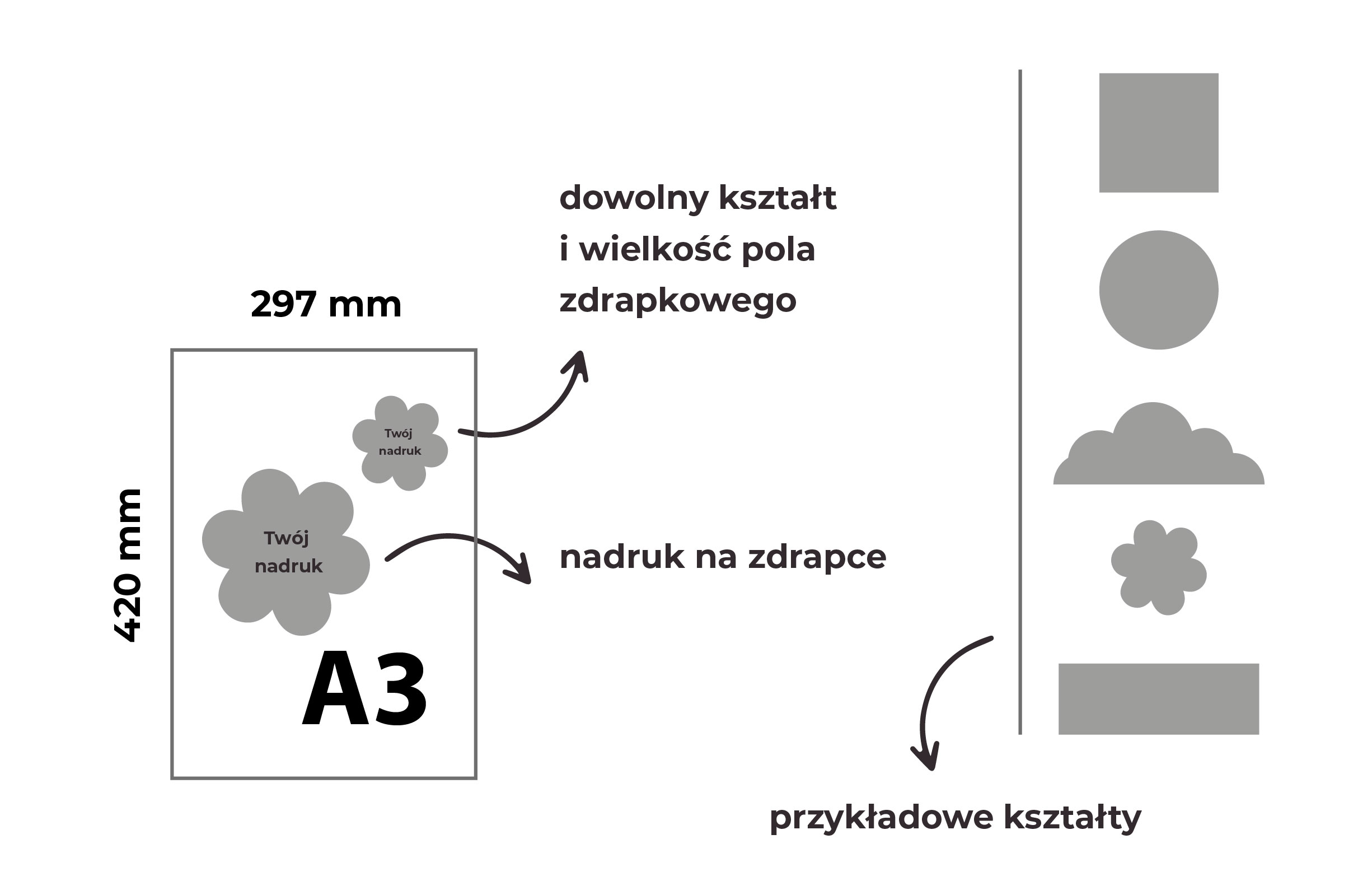 PLAKAT A3 420x297mm ZE ZDRAPKĄ o dowolnym kształcie i wielkości pola zdrapkowego