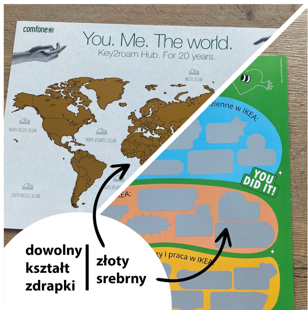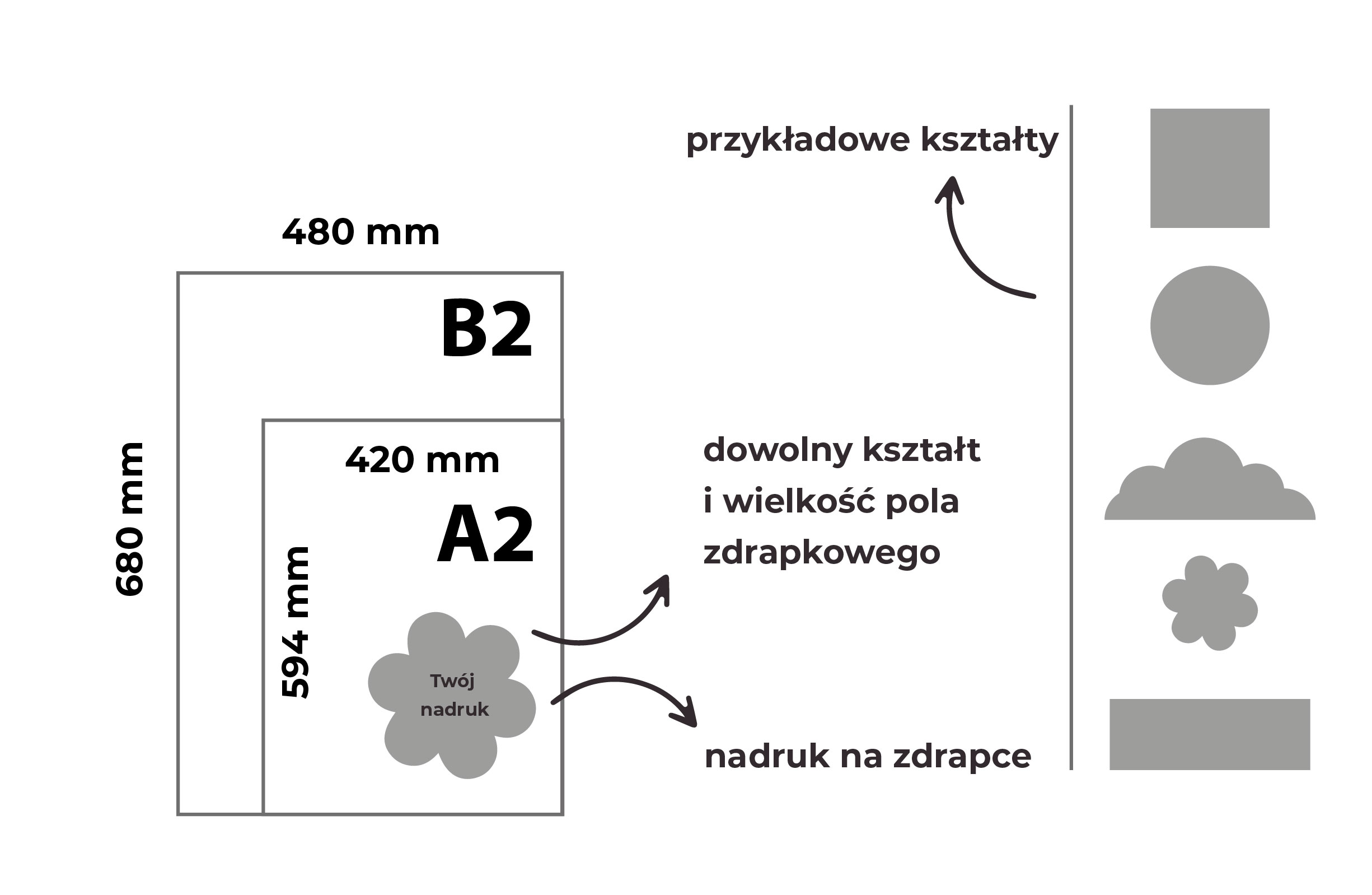 PLAKAT B2 480×680 mm A2 420×594 mm ZE ZDRAPKĄ o dowolnym kształcie i wielkości pola zdrapkowego