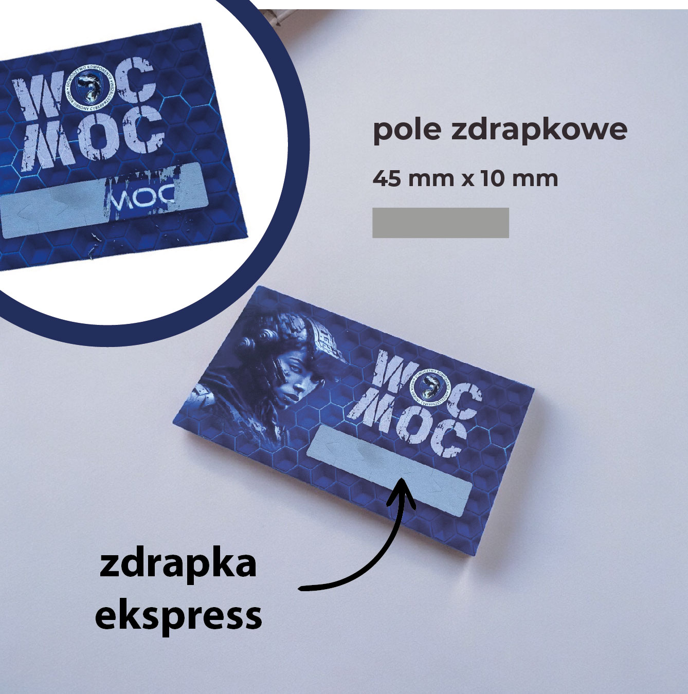 Kolor zdrapki:  zdrapka ekspress srebrna, zdrapka o dowolnym kształcie srebrna lub złota z możliwością nadruku w jednym kolorze na zdrapce.