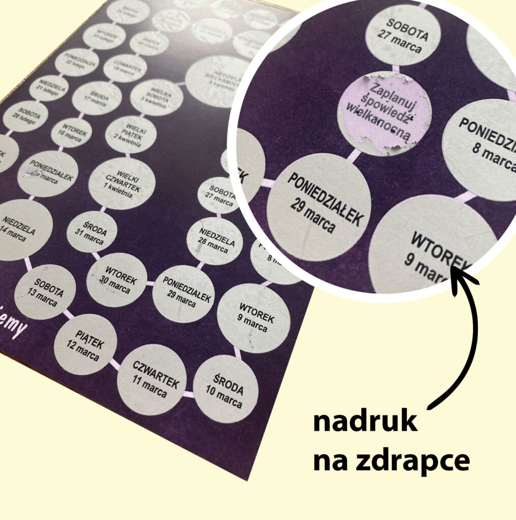 nadruk na zdrapce w jednym kolorze