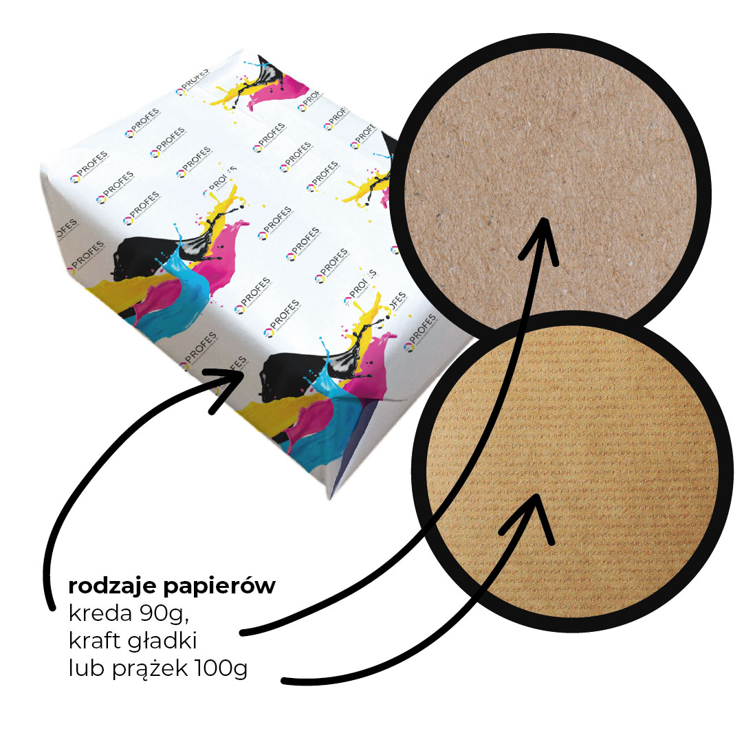 Materiał: kreda 90g, kraft prążek lub gładki 100g