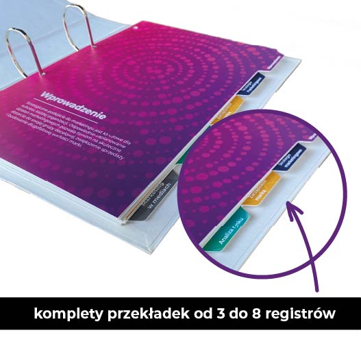 Przekładki z registrami do segregatorów to funkcjonalne akcesoria biurowe, które umożliwiają skuteczną organizację dokumentów w segregatorach. Wydrukowane na papierze kreda 350g dwustronnie zafoliowanej, zapewniają długotrwałą trwałość i estetyczny wygląd