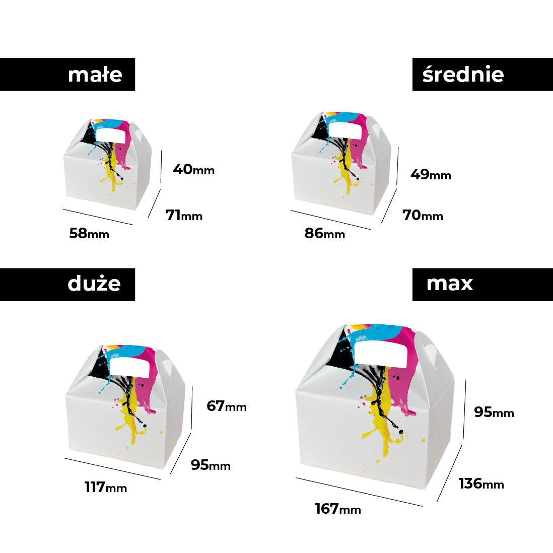 pudełko z uchwytem max długość 167 x głębokość 136 x wysokość 95mm