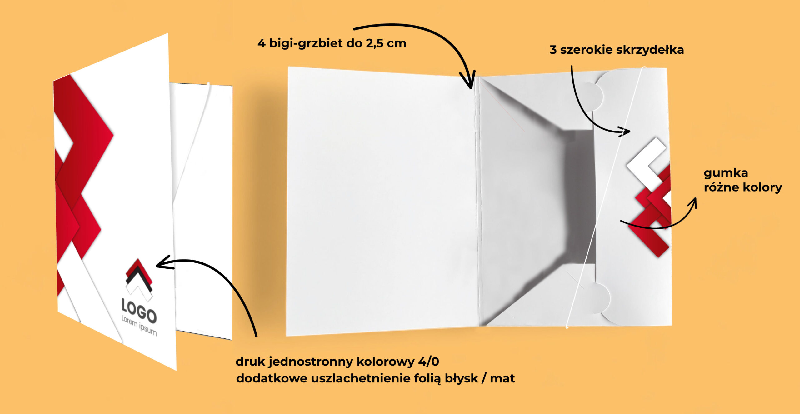 TECZKA TRÓJSKRZYDŁOWA z gumką, 4 bigi możliwość regulowania karton 300g