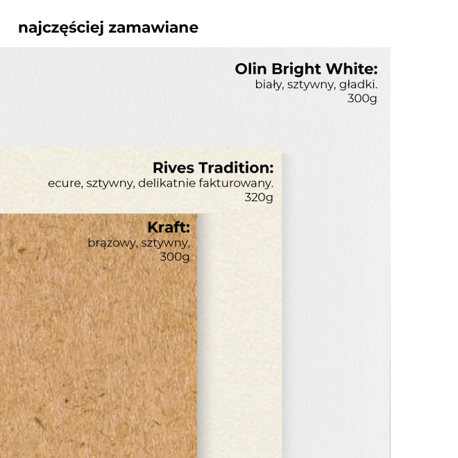 - w przypadku papierów nietypowych i małego nakładu dopłata 59,00 zł netto do zamówienia